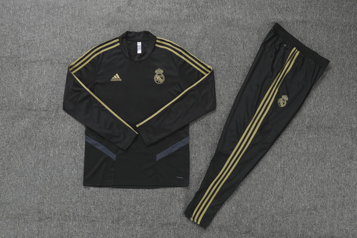 Kids 19-20 Real Madrid Black Sweat Shirt Kit(Top+Trouser)